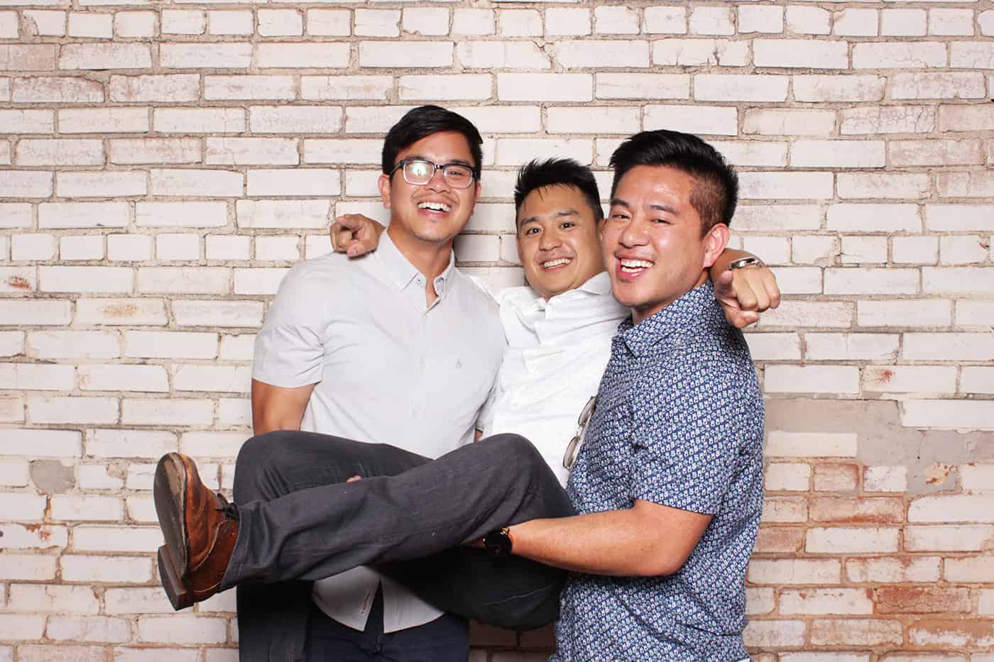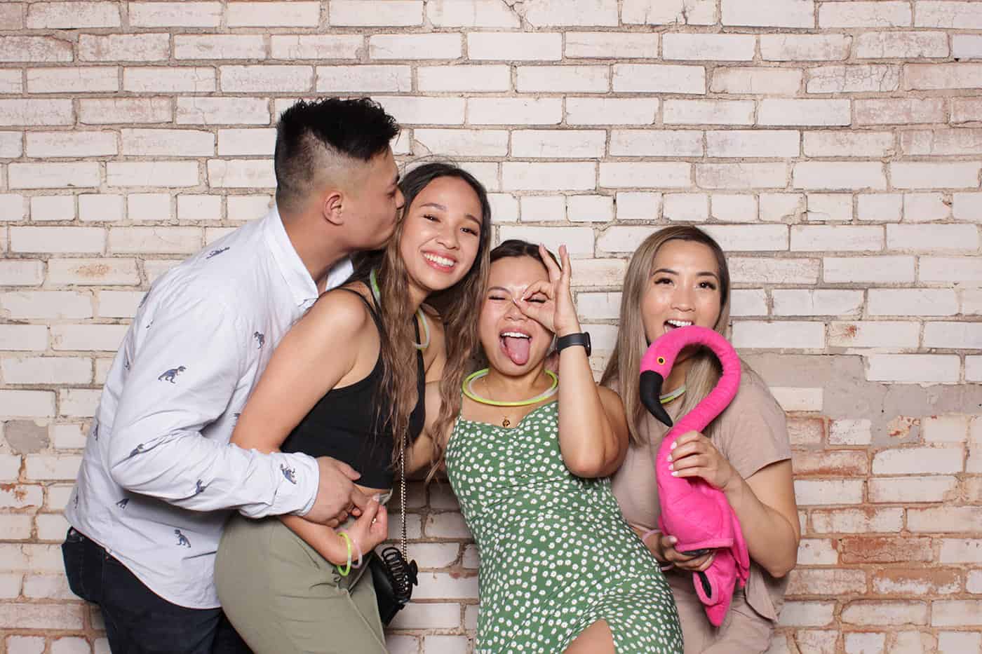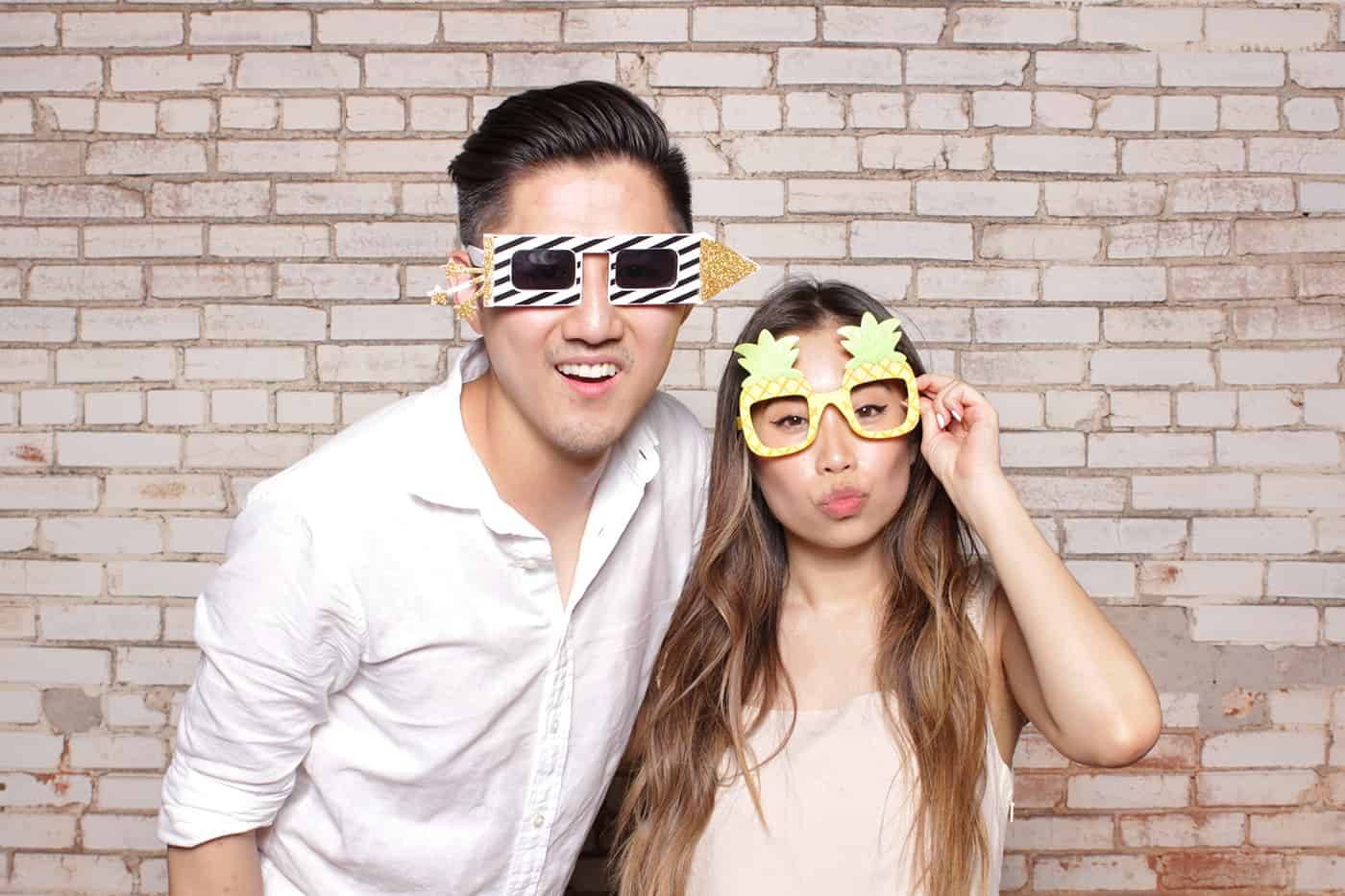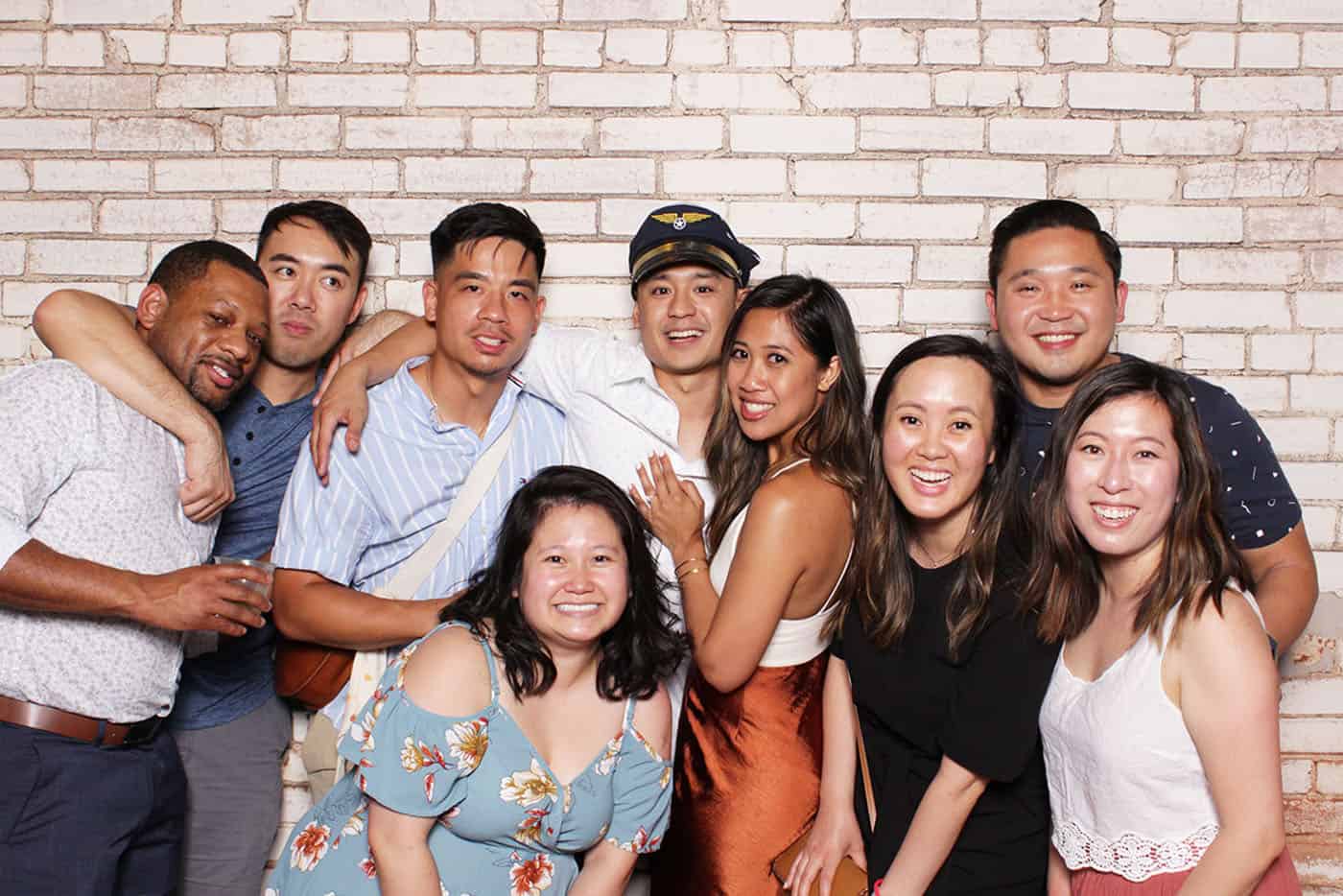 The rooftop at Plenty Mercantile is a really special venue. Celebrating both the proposal and Tovan’s birthday, it was a rockin’ party. I love the industrial vibe, the bistro lights, and the views of the OKC city skyline. The only thing with being on a rooftop in Oklahoma is that it can get pretty windy! Normally we require that we’re in a space that’s protected from the elements. We can be setup outside, but normally this means we need something like a tent or awning. But I knew this was a very special event and we always try to do everything we can to make it all come together. We brought our ever popular white & gold mermaid sequin backdrop. We setup and everything looked good until a big gust of wind took the backdrop like a sail and it journeyed across the roof until it broke into pieces. Being in the wedding industry, you need to be ready for anything. Luckily, the old brick walls at Plenty Mercantile actually looks pretty cool. In the end, we made it work. In fact, I think it was all meant to be ’cause I think it turned out even better. If you’re planning on renting a photo booth at Plenty Mercantile, consider just using the wall! Anyway, it was super fun, check out the photos below. Congrats Tim & Tovan!