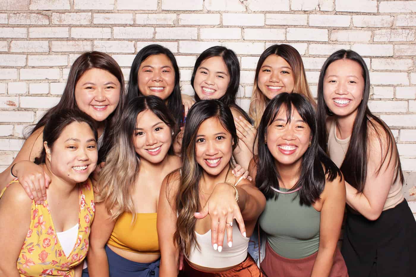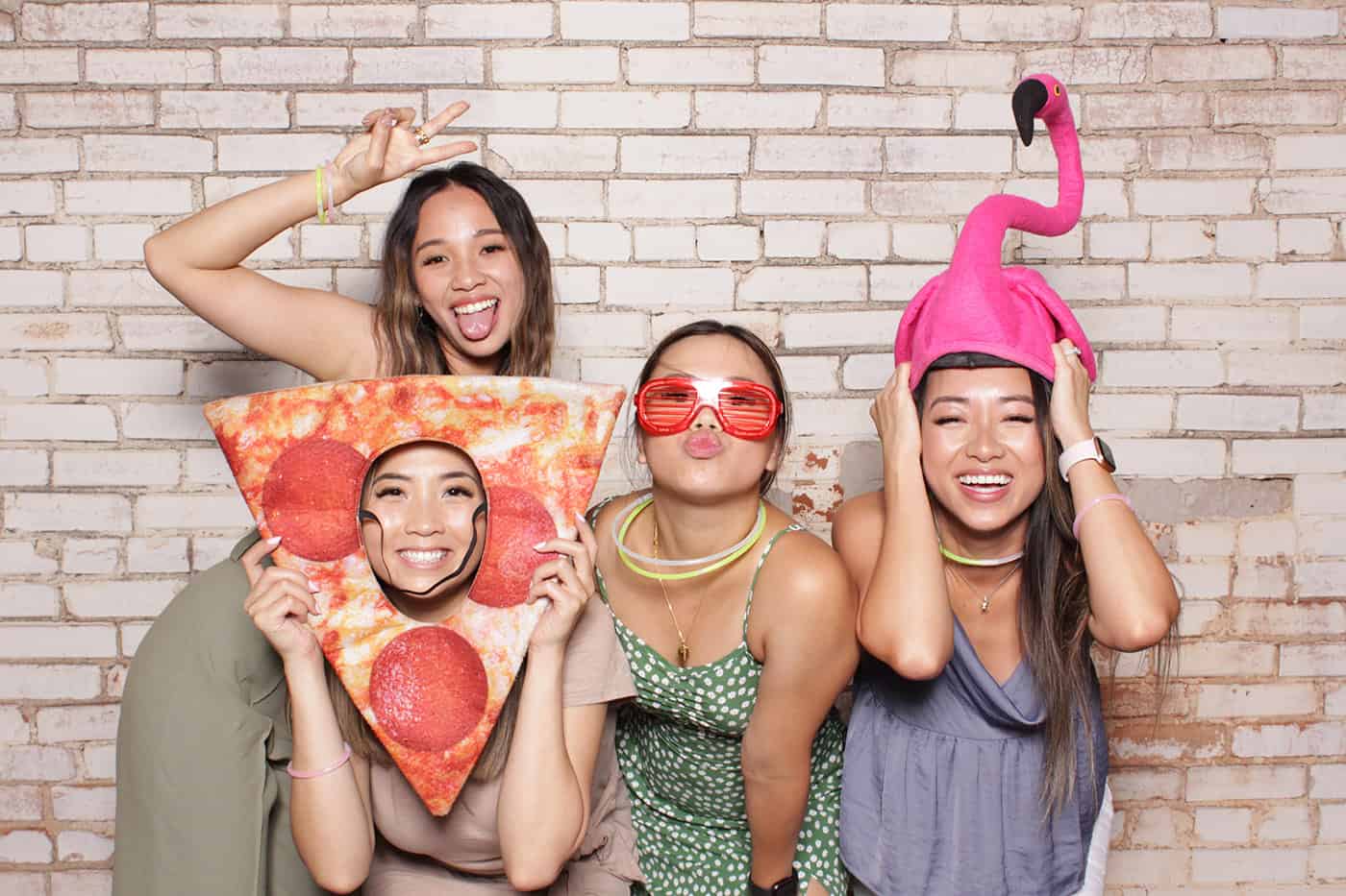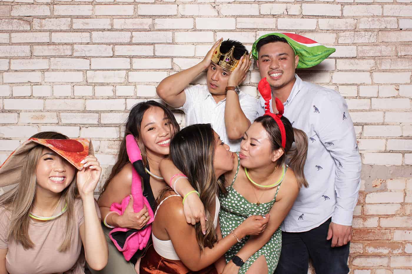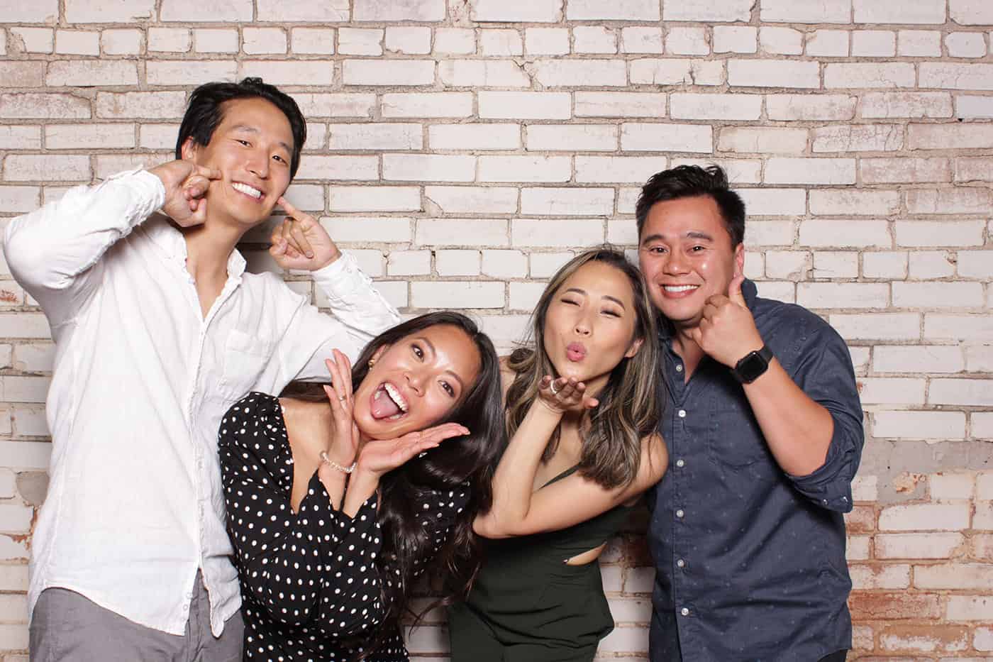 The rooftop at Plenty Mercantile is a really special venue. Celebrating both the proposal and Tovan’s birthday, it was a rockin’ party. I love the industrial vibe, the bistro lights, and the views of the OKC city skyline. The only thing with being on a rooftop in Oklahoma is that it can get pretty windy! Normally we require that we’re in a space that’s protected from the elements. We can be setup outside, but normally this means we need something like a tent or awning. But I knew this was a very special event and we always try to do everything we can to make it all come together. We brought our ever popular white & gold mermaid sequin backdrop. We setup and everything looked good until a big gust of wind took the backdrop like a sail and it journeyed across the roof until it broke into pieces. Being in the wedding industry, you need to be ready for anything. Luckily, the old brick walls at Plenty Mercantile actually looks pretty cool. In the end, we made it work. In fact, I think it was all meant to be ’cause I think it turned out even better. If you’re planning on renting a photo booth at Plenty Mercantile, consider just using the wall! Anyway, it was super fun, check out the photos below. Congrats Tim & Tovan!