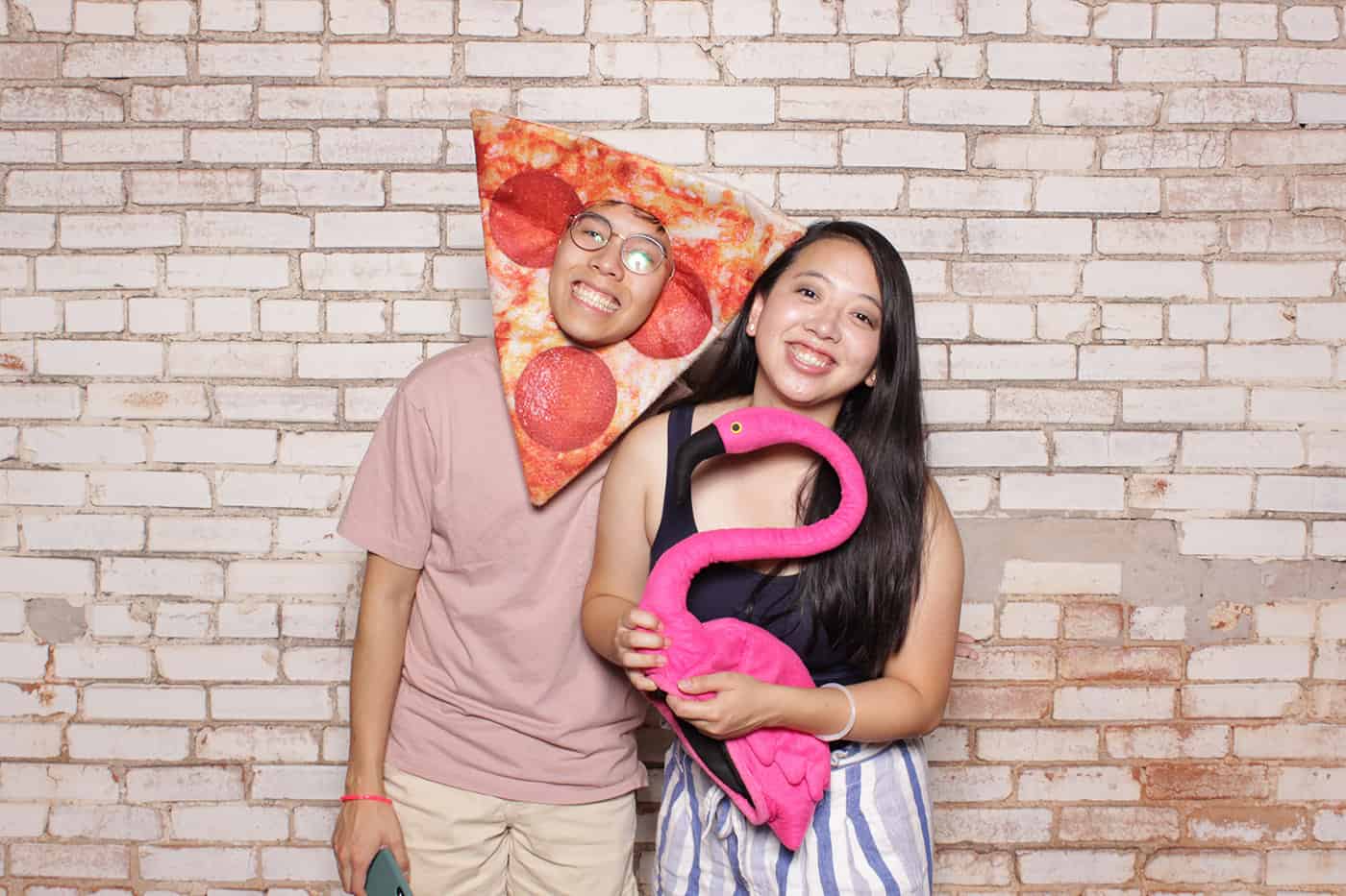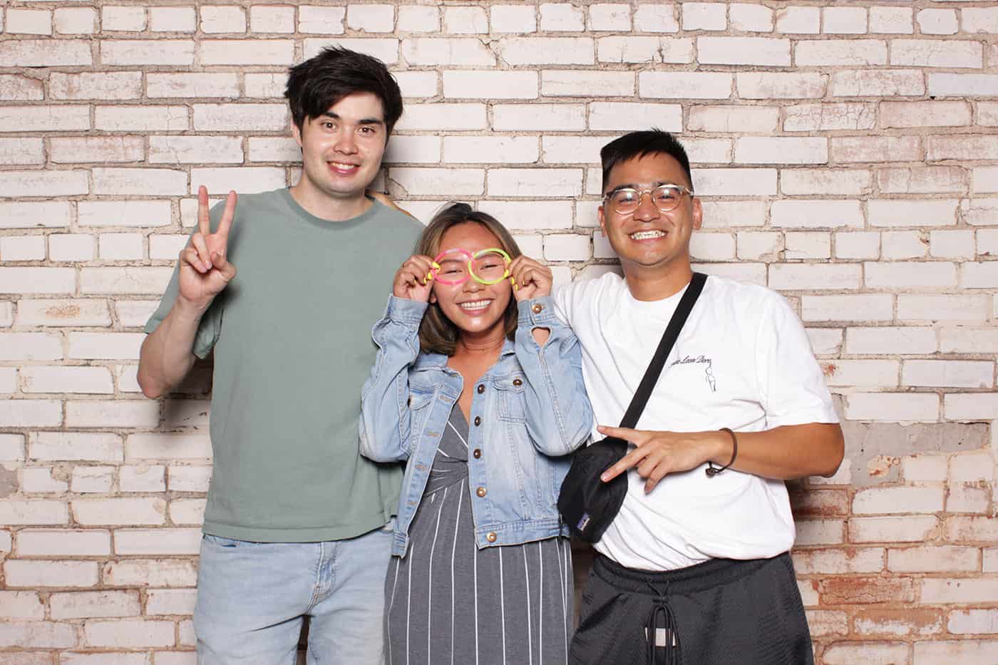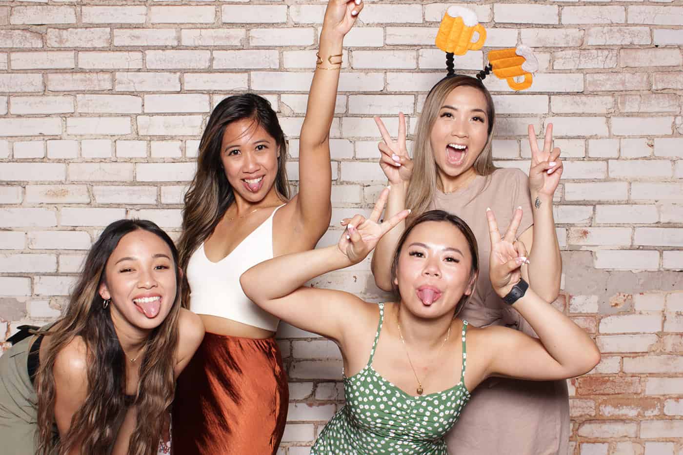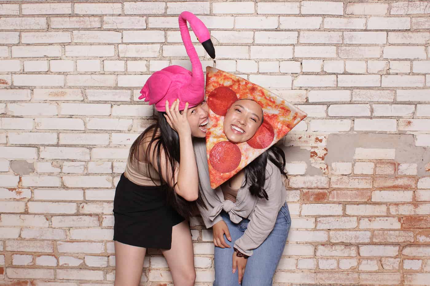 The rooftop at Plenty Mercantile is a really special venue. Celebrating both the proposal and Tovan’s birthday, it was a rockin’ party. I love the industrial vibe, the bistro lights, and the views of the OKC city skyline. The only thing with being on a rooftop in Oklahoma is that it can get pretty windy! Normally we require that we’re in a space that’s protected from the elements. We can be setup outside, but normally this means we need something like a tent or awning. But I knew this was a very special event and we always try to do everything we can to make it all come together. We brought our ever popular white & gold mermaid sequin backdrop. We setup and everything looked good until a big gust of wind took the backdrop like a sail and it journeyed across the roof until it broke into pieces. Being in the wedding industry, you need to be ready for anything. Luckily, the old brick walls at Plenty Mercantile actually looks pretty cool. In the end, we made it work. In fact, I think it was all meant to be ’cause I think it turned out even better. If you’re planning on renting a photo booth at Plenty Mercantile, consider just using the wall! Anyway, it was super fun, check out the photos below. Congrats Tim & Tovan!