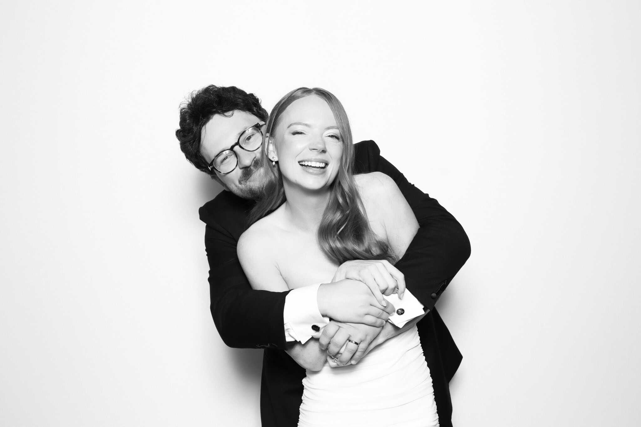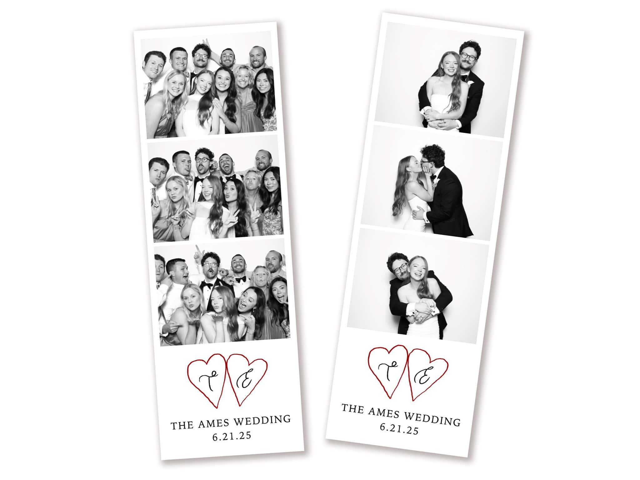 For their photo booth, the couple opted for our signature black and white booth, bringing a touch of Hollywood to the celebration. The bride, Elizabeth, even designed their custom monogram and we built their photo template around it—one of our favorite ways to personalize each event. At Mod Fox Photobooth, every template we create is custom. Whether you have just a color palette, or a ready-made invitation suite you want us to match, we’re here to bring your vision to life. You choose between our classic 2″x6″ photostrips or 4″x6″ postcard-style prints, and we’ll always send you a preview to approve before the big day. Elizabeth and Tyler’s wedding was filled with style, love, and sweet moments—just the kind of event we love to be a part of.