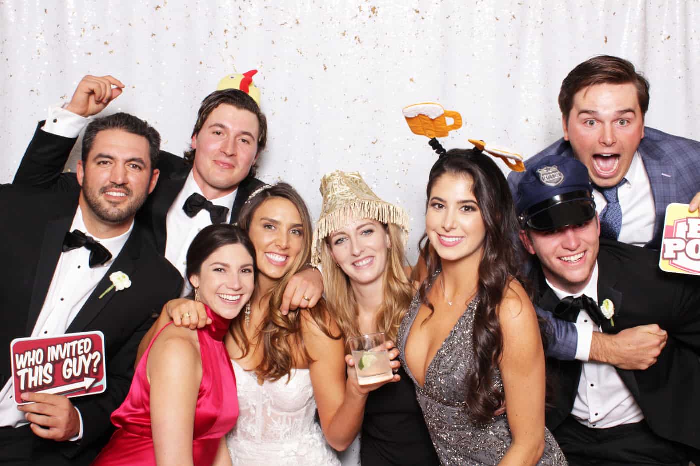 Charlie & Lauren had their beautiful wedding at one of the most exclusive wedding venues here in Oklahoma. Southern Hills Country Club in Tulsa, OK is known for its attention to detail and luxury clientele it serves. We were so excited that we had the opportunity to provide a luxury photo booth rental for this amazing wedding! One of the guests came by the booth and commented that there were so many good-looking people at this wedding. I laughed it off, but they were right! Everyone looked fabulous! Guests flowed between mingling at tables overflowing with florals, hitting the dance floor with the live band, and partying with us at the photo booth. We flipped all the sequins white on our White & Gold Mermaid backdrop and placed the couples’ monogram from their invitation on the photostrips to create a simply classy look. A big beautiful celebration like this was the perfect way to end the year.