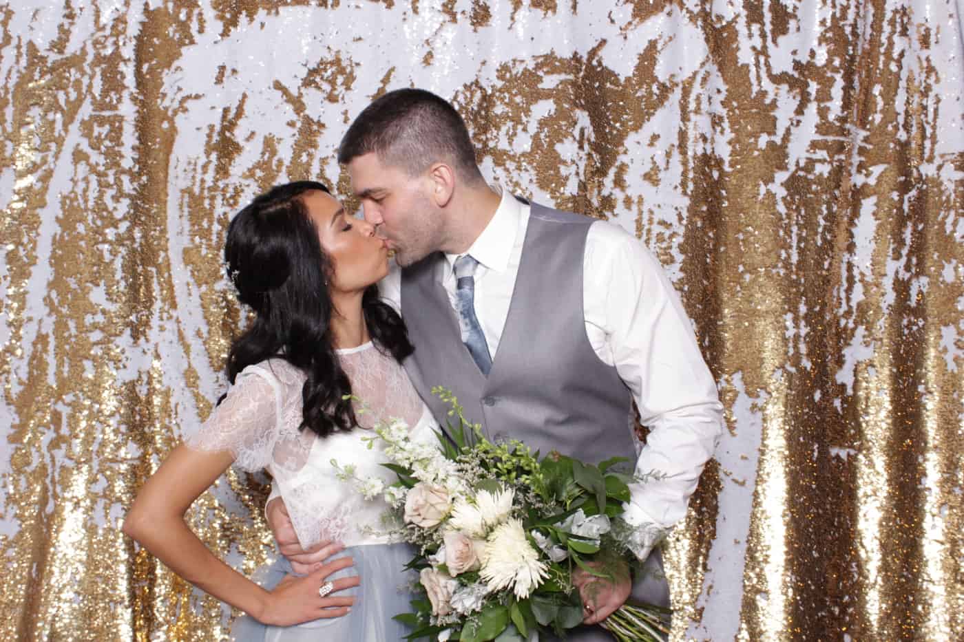 Nate and Jelena had a beautiful July wedding at Sparrow Beginnings in Stillwater, OK. The ceremony was held outside on the back patio with the reception immediately following inside this gorgeous venue. I love that Sparrow is the perfect balance between modern and rustic. This Stillwater, OK wedding reception was a killer party…thanks to Mod Fox Photobooth! Nate and Jelena are the nicest couple. I love Jelena’s flowing light blue dress. The photo booth was so much fun. We designed a 4″x6″ print template to match the plethora of greenery in their decor. And they chose our stunning White & Gold Mermaid sequin backdrop.